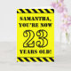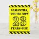 The front of this fun and bold birthday-themed greeting card design features a personalised name and the message "YOU’RE NOW 23 YEARS OLD!" in black stencil look text on a yellow coloured background. The front also features an eye-catching black and yellow striped pattern at the top and bottom edges. The inside features a customised birthday greeting message, or could perhaps be cleared and left blank if a message is to be written by hand instead. A custom birthday card like this might be a fun way to send birthday wishes to somebody who is celebrating their twenty third birthday. [~Z0000413]