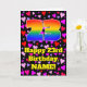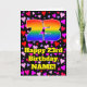 The front of this fun and happy birthday themed greeting card design features a large number “23” having a rainbow spectrum gradient inspired pattern. It also features the message “Happy 23rd Birthday,”, and a custom name. The background of the front features a pattern of red, purple, and pink heart shapes. The inside has a personalised birthday greeting message, or could perhaps be cleared and left blank if a message is to be written by hand instead. A happy, editable birthday greeting card like this might be sent to celebrate somebody’s twenty-third birthday. [~Z0000551]