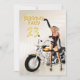 A beautiful biker girl points to your party invitation. An irresistible invitation for men of any age.