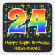 This fun, colourful, and vibrant birthday sticker design features a large number "24" having a rainbow spectrum gradient inspired pattern. It also features the message "Happy 24th Birthday,", and an editable name. Part of the background features a pattern of various music notes and symbols having a variety of colours and sizes. Fun, customisable birthday stickers like this might be used as a birthday celebration decoration, or perhaps given as a birthday present, or perhaps be used when wrapping birthday gifts being given to celebrate a song composer’s, a musician’s, a singer’s, or somebody else’s 24th birthday. [~Z0000423]