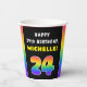 24th Birthday: Colourful Rainbow # 24, Custom Name Paper Cups