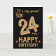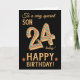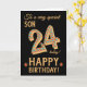 A chic 24th Birthday Card for a very special Son, with the number, 24, in a bright mosaic pattern with a gold-effect outline and all the text in gold-effect lettering (ie not metallic paint). A bright red and gold-effect star is beside the 'Happy Birthday' on this striking digital design by Judy Adamson. The inside message, which you can change, is 'With love,'