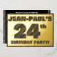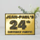 The front of this bold twenty-fourth birthday celebration foil invitation card features an editable name, a large number “24th”, the message “BIRTHDAY PARTY!”, and a border, all featuring a rustic, yet sophisticated, faux wood grain appearance inspired pattern. The back features personalised details about the event, such as the date, time, location/venue, and any other useful information. Personalised invitations like these might be used to invite attendees to a birthday party being held to celebrate somebody’s 24th birthday. [~Z0000595]