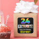 This joyful and upbeat birthday themed square sticker design features a large number “24” having a multicolored rainbow spectrum inspired gradient pattern, plus the message “Happy 24th Birthday,” and a customisable recipient name. There are also photos that can be personalised, perhaps with photos of the recipient, the recipient’s family and friends, and/or the sender(s) of a gift. Stickers like these might be used when celebrating somebody’s twenty-fourth birthday. (Photography © Storytree Studios, Stanford, CA.) [~Z0000670]
