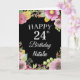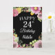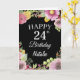 24th Birthday Watercolor Floral Flowers Black Card with personalised name and age. For further customisation, please click the "Customise it" button and use our design tool to modify this template.
