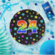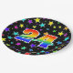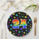 This colourful, cheerful, and fun paper plate design features a large number "24" containing a rainbow spectrum gradient inspired pattern. The background features a pattern of colourful star shapes. Fun paper plates like this might be used at somebody’s 24th birthday celebration, or a couple’s twenty fourth anniversary party, or some other twenty fourth event. [~Z0000493]