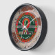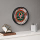 The size of the clock is dramatic and the abstract alcohol ink design is soothing and intricate at the same time. I chose the black frame that adds pop to the blue and gold design. The gold printing would be better in a slightly darker or larger font. I love it and I’m looking for just the right place in ny new apartment. I would recommend this clock for a personal gift or a present. I feel that the quality is excellent for the money! I’m a bit of a clock nut so I’m pretty particular about my purchases. The clock is larger in diameter than many if the clocks I have, so it stands out very well. I think a slightly darker printing color and a moderately larger size would best suit a professional decor or add more impact in a work place item.
