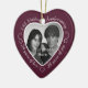 Celebrate a 24th happy year of marriage with a custom photo ornament in a delightful heart shape frame. Simply upload your own photo of the married couple and it will appear in the cutout. The eggplant (aubergine) colour surround features a white script font and decorations. The words are: 24th Wedding Anniversary - 24 years of love - 24 years of joy. On the back you can personalise this keepsake with your own message and can also add the year or a full date if you prefer. Note: if you like the twenty-four year anniversary ornament but have your heart set on a different colour, please contact me.