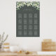 A large dark grey green winter wedding seating chart featuring hand painted snowberries and eucalyptus. The template text is set for 16 tables of 10 - all text is fully editable. Alternative layouts and coordinating items are available in my store.