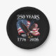 250 Years 4th Of July Eagle USA Flag 1776 2026 Paper Plate