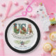 Elevate your Semiquincentennial dining experience with these sophisticated black-bordered paper plates. Featuring our original botanical watercolor "USA" artwork and the historic 1776–2026 milestone, these high-quality plates offer a designer look for your 4th of July gala or commemorative event. Coordinate them with our matching black guest towels and napkins for a truly professional party aesthetic.