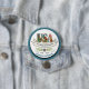 Celebrate the 2026 Semiquincentennial with this clean and classic white boutique button. Featuring our signature botanical watercolor "USA" art, a stylish blue trim, and the "4th of July" date detail, this 1776–2026 commemorative pin is a must-have for parade-goers and patriotic collectors. Lightweight and durable, it's the perfect accessory for showing your American spirit during the 250th-anniversary celebrations.