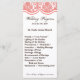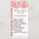 25 4x9 Wedding Program Coral Pin White Damask Lace Programme