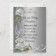 25th Anniversary invitation elegant white roses on silver satin look background. Customisable text.