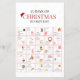 Cheerful 25 days of Christmas bucket list artwork designed in a clean grid layout with festive red typography and playful holiday illustrations. Each numbered day features a joyful seasonal activity, surrounded by cozy winter elements on a bright white background. The balanced, modern style creates a warm and family-friendly holiday atmosphere. The layout allows easy editing of text, making it flexible for different holiday traditions and preferences.