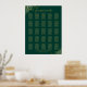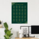 This beautiful wedding seating chart includes table assignments for 250 guests with 10 guests per table. The design is simple yet elegant featuring gold text on an emerald green colored background with lacy faux foil floral filigree in the corners, and calligraphy script reading: please find your table.