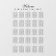 All text is black. The word Welcome is written in an elegant calligraphic script, the rest in caps. The 25 tables are on 5 rows x 5 columns. It is portrait orientated. Above them and under the word Welcome, there is the message "Please find your seat!".