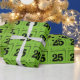 Holiday wrapping paper with tiled black text that reads simply 25 to depict the date, December 25, Christmas! You can customise the green background to be any colour you want.