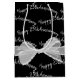 Happy 25th anniversary text in a tile pattern and white sheer bow on black.