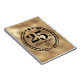 Gold foil style 25th-anniversary notebook with a business logo and year. Ideal for the boss and employees or as promotional supplies for customers. Commemorative design with a laurel branch and stars. The logo can be changed for text by clicking the button to edit the design.