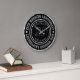 Elegant 25th wedding anniversary commemorative clock with customisable text. Metallic silver and black. White diamonds accents.