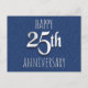Silver 25th Anniversary design over a blue faux leather background.