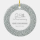 This 25th Wedding Anniversary keepsake Christmas ornament features a silver faux glitter border. Custom text allows you to add the names for the couple and their wedding date on both sides.