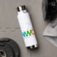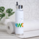 Celebrate New World Chorale's 25th anniversary with this stylish water bottle. This design includes a straw built into the removable cap.