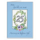 Rejoice with a Catholic nun who is celebrating her 25th Anniversary in the religious life. Silver 3 dimensional looking number 25 is at the centre of the card. a leaf and branch wreath surrounds it with flowers at the bottom.