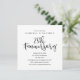 This design features the words "25th anniversary" in a modern handwritten script on a white background. Text fields and background colour can be changed, if desired.
