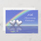 25th silver anniversary invitation with a rainbow and two shiny silver hearts floating on the blue water. Customise the sample text on the back with your own information for your event.