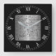 25th Anniversary word art clock design with black background. Silver wedding anniversary celebration gift idea for him or her.