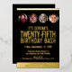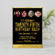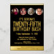 Bold simple graphic black, and gold foil or your own foil colour photo template 25th birthday invitation. Personalise this milestone birthday invitation with your own birthday party event details, and four different photos of your birthday boy or girl in the photo circles. Other years colours and matching items are available. © Original design by Sarah Trett for www.mylittleeden.com on Zazzle.