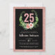 Chic 25th or any age birthday design with blush pink glitter elements and a pretty floral wreath contrasted by a black background.
