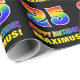 This fun, colourful, and cheerful birthday-themed wrapping paper design features a large number "25" and the message "HAPPY BIRTHDAY,", both having a rainbow spectrum gradient inspired pattern colouring, along with a bold yellow editable recipient name. The background is coloured black. Fun wrapping paper like this might be used when wrapping a birthday present or gift being given to somebody who is celebrating their twenty fifth birthday. [~Z0000475]