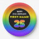 25th Birthday: Colourful Rainbow # 25, Custom Name Paper Plate