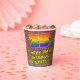 This vibrant and fun urban street art and graffiti themed birthday paper cup design features a large number “25” having a colourful rainbow spectrum gradient inspired pattern. It also features the message “Happy 25th Birthday,”, and an editable name. The background has a brick wall pattern. Vibrant, colourful paper cups like this might be fun to use at a birthday celebration/party being held to honour somebody’s twenty fifth birthday. [~Z0000543]