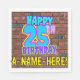 This fun birthday themed paper napkin design features the message “HAPPY 25TH BIRTHDAY,” having a vibrant, colourful, urban street art and graffiti inspired appearance, plus a personalised recipient name. The background features a brick wall inspired pattern. Birthday themed paper napkins like this might be used at a birthday party celebrating somebody’s twenty fifth birthday. [~Z0000534]
