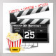 25th Hollywood Film Movie theme Birthday party t-shirts, cake toppers, cake plates, party favours, cards, buttons for your Movie themed birthday party. 25th birthday presents and decorations with film movie clapboard, popcorn, lights, camera, action and the number 25. 25 year old gifts for people turning 25.