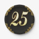 25th Birthday or Anniversary Regal Gold and Black Paper Plate