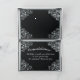 Custom greeting text, regal decorated with silver text and flourish ornate corners folded greeting card with black background for a 25th birthday. Alternatively can be used for an anniversary.