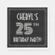 This elegant and Roaring Twenties inspired twenty-fifth birthday celebration/party paper napkin design features a customisable name, a fancy art deco style inspired number “25th”, the message “BIRTHDAY PARTY!”, and a border pattern consisting of lines. The background is coloured black by default, but it can be customised to a different colour, if desired. Luxurious paper napkins like these might be used when hosting a birthday party for somebody in celebration of their twenty fifth birthday. [~Z0000616]