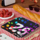 Neon rainbow dot pattern on black background for 25th birthday party.