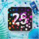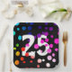 25th Birthday Rainbow Dots on Black Paper Plate