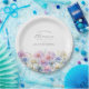 Perfect table decor for a September birthday party. Aster is the birth flower for that month. It forms a pretty watercolor bottom border on this floral personalised paper plate. The birthday guest of honour's name, age and birthdate are placed above it using elegant calligraphy and typography. All text is editable.