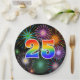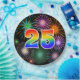 This fun, colourful, and cheerful paper plate design features a large number "25" containing a rainbow spectrum gradient inspired pattern. It also features a exciting and vibrant bursting celebratory fireworks inspired pattern. It has a black coloured background. Paper plates like this might be fun to use at a celebration being held to honour somebody who is celebrating their 25th birthday, a twenty fifth anniversary, or some other 25th event. [~Z0000490]