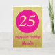 25th Happy Birthday Hot Pink and Gold Glitter Card with personalized name. For further customization, please click the "Customize it" button and use our design tool to modify this template.