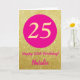 25th Happy Birthday Hot Pink and Gold Glitter Card