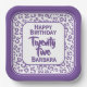 This unique numeric design features a purple and white random number pattern with the milestone number 25 displayed in various sizes and angles. A white rounded square serves as the centre for your text, surrounded by purple and white elements.