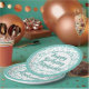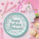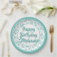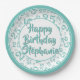 25th Party Random Number Pattern Teal/White Paper Plate